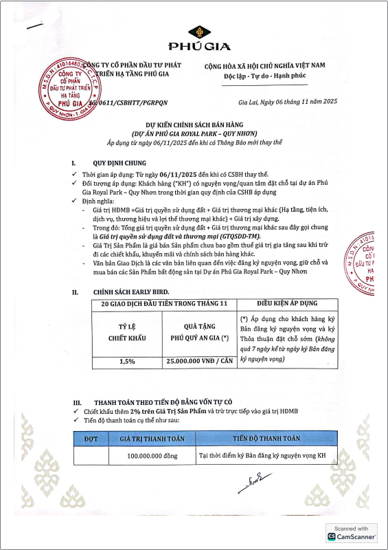 CHÍNH SÁCH BÁN HÀNG ÁP DỤNG TỪ NGÀY 6/11/2025