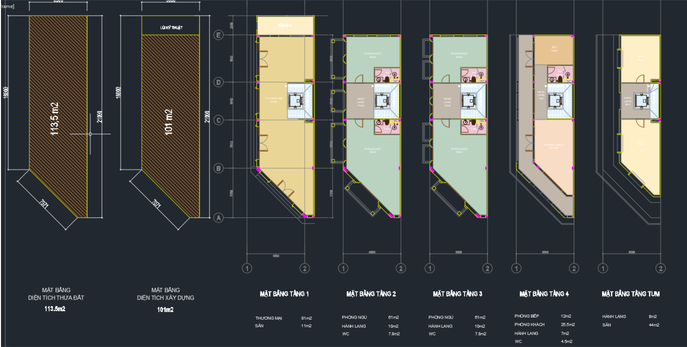 MẶT BẰNG CĂN MẪU 4 TẦNG + TẦNG LỬNG + SÂN THƯỢNG