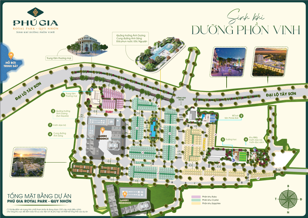 Tọa lạc tại vị trí chiến lược phía Tây Quy Nhơn, dự án được quy hoạch trên diện tích 6,3ha với định hướng phát triển khu dân cư xanh, hài hòa giữa thiên nhiên và đô thị hiện đại. Các công trình trong dự án mang phong cách kiến trúc tân cổ điển thanh lịch, tạo điểm nhấn thẩm mỹ và giá trị bền vững theo thời gian. Không gian sống được chú trọng quy hoạch thoáng rộng, cây xanh bao phủ, tích hợp thương mại – giáo dục – tiện ích, hình thành nên một cộng đồng cư dân văn minh và đẳng cấp. Nhà liền kề "Tân cổ điển" + xây sẵn 4 tầng 1 tum - Phú Gia Royal Park Quy Nhơn với tổng diện tích 63.557m². TIỆN ÍCH DỰ ÁN: