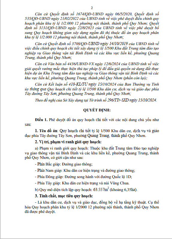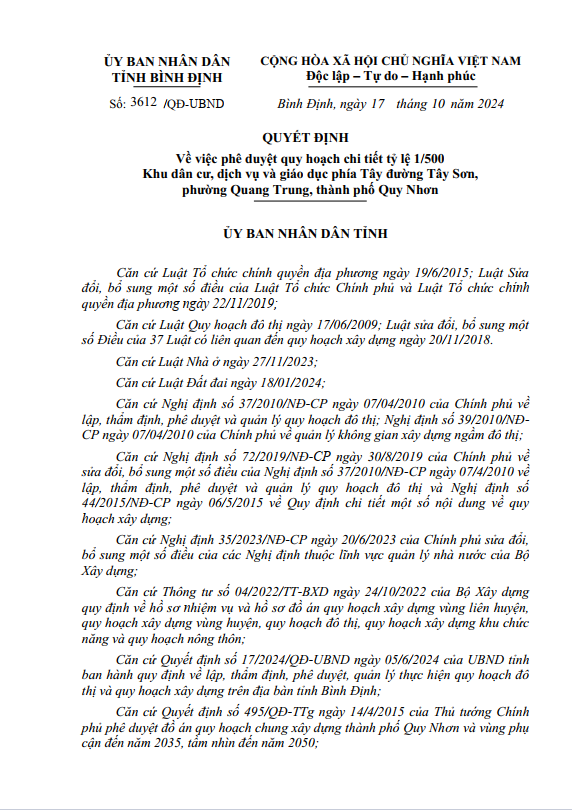 QUYẾT ĐỊNH VỀ VIỆC PHÊ DUYỆT QUY HOẠCH CHI TIẾT TỶ LỆ 1/500