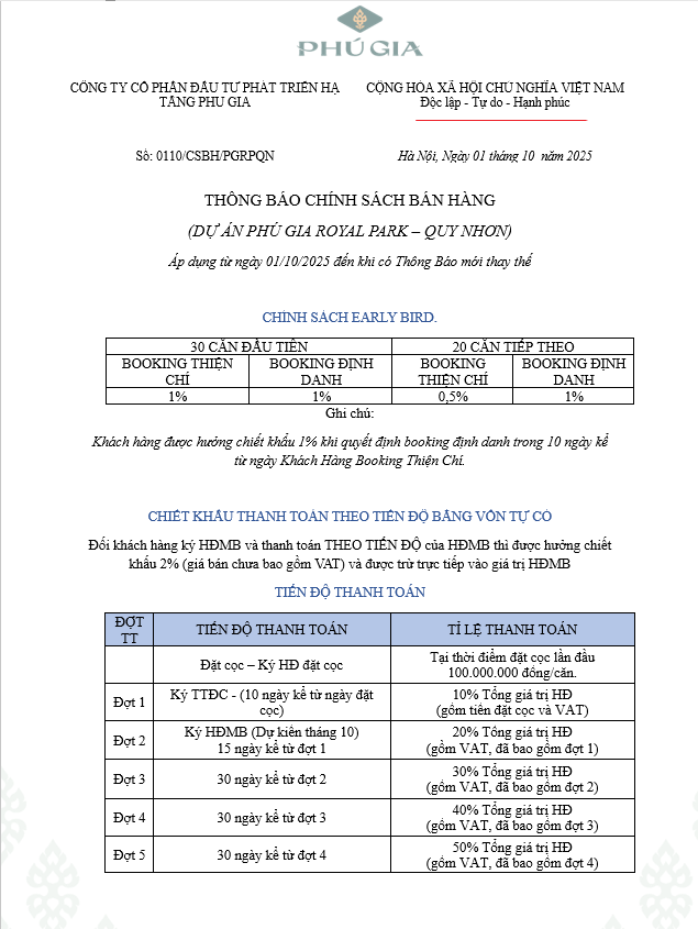 CHÍNH SÁCH BÁN HÀNG ÁP DỤNG TỪ NGÀY 1/10/2025