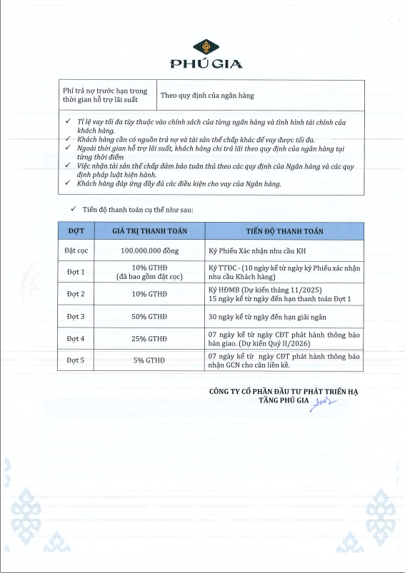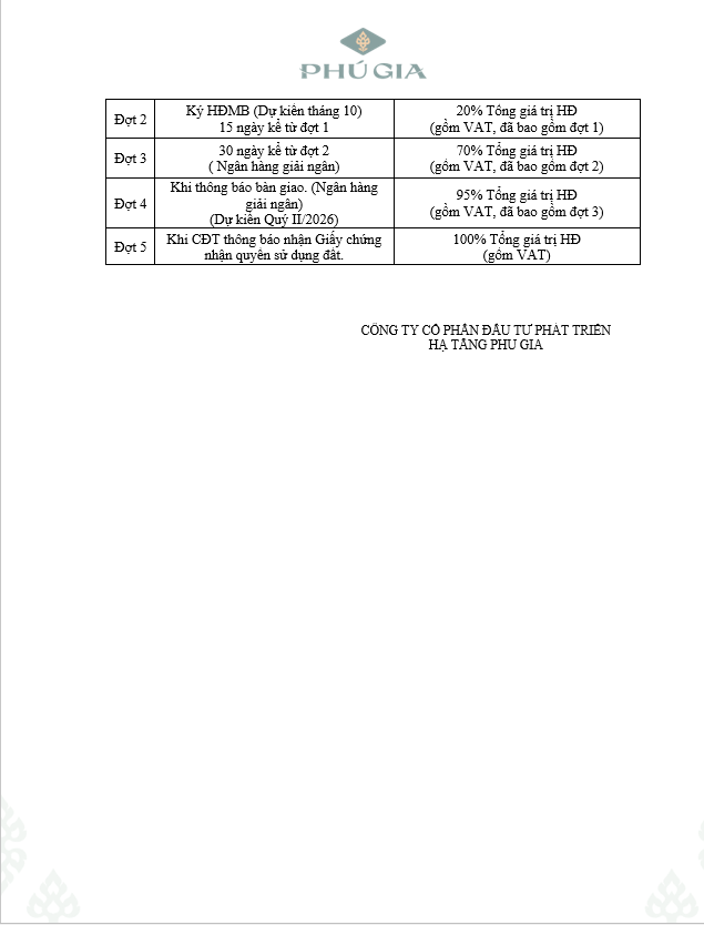 | Chủ đầu tư | Công ty CP Đầu tư Phát triển Hạ tầng Phú Gia |