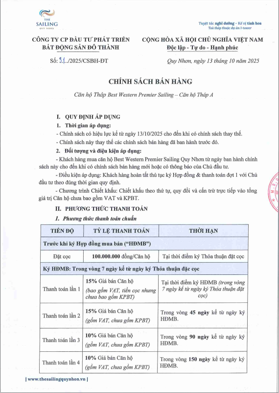 CHÍNH SÁCH BÁN HÀNG MỚI NHẤT CHO BLOCK A NGÀY 13/10/2025
