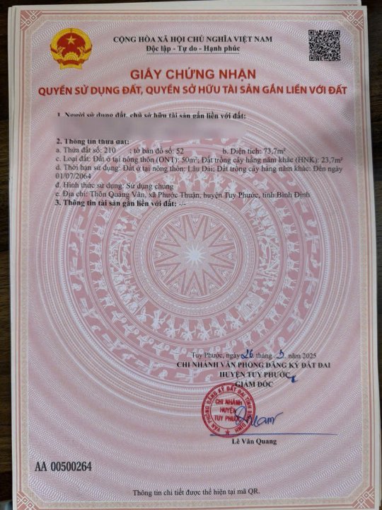 1. MÔ TẢ CHUNG: - Vị trí: Quảng Vân, Phước Thuận, Tuy Phước cũ (nay là xã Tuy Phước, tỉnh Gia Lai), tiếp giáp Quy Nhơn - Đường bê tông xe ô tô - Diện tích: 154m2 (7 x 21). Có 100m2 thổ cư - Hướng: Đông Bắc thông thoáng; đón được cả hướng Đông Nam, tận hưởng nắng ban mai giàu vượng khí. 2. LỢI THẾ: - Chỉ cách trục đường Điện Biên Phủ nối dài (kết nối sân bay Phù Cát – TP. Quy Nhơn) 250m: 1 lợi thế lớn cho tiềm năng tăng giá cao; cách QL19 mới chỉ 1,5km – giao thông cực kỳ thuận tiện, kết nối Bắc – Nam dễ dàng. - Vị trí gần trung tâm TP. Quy Nhơn, thuận lợi di chuyển và sinh sống, kinh doanh... - Cách sông Hà Thanh chỉ hơn 300m: rất thoáng mát và trong lành - Bên cạnh căn nhà là khu đất lớn được quy hoạch dân cư, nên sắp tới sẽ được chính quyền đầu tư hạ tầng, có thể tổ chức đấu giá và tái định cư.... Căn nhà sẽ càng được nâng cao giá trị. - Đặc biệt: xã Phước Thuận đã sáp nhập với các thị trấn và các xã lớn như: Tuy Phước, Diêu Trì, Phước Lộc, Phước Nghĩa để hình thành xã mới có tên xã TUY PHƯỚC, phát triển mạnh hơn. Chính quyền mới chắc hẳn sẽ đầu tư phát triển cho xã Tuy Phước mới rất nhiều... Tiềm năng tăng giá cực cao, đúng nghĩa “hổ mọc thêm cánh”! 3. NHƯỢC ĐIỂM: Đường bê tông ô tô hiện tại chỉ đủ 1 chiều cho 1 xe ô tô/tải qua lại 4. NHẬN ĐỊNH CHUNG: - Nhà cấp 4 vào ở ngay, phù hợp gia đình ra ở riêng và có tài chính không quá nhiều - Dự đoán sau này sẽ có đường kết nối với đường Điện Biên Phủ nối dài (sân bay Phù Cát - Quy Nhơn) thì giao thông càng thuận tiện và giá trị khu này tăng cao rất nhiều, khi vị trí lô đất chỉ cách đường 250m 5. ĐIỂM NỔI BẬT: - Gần đường Điện Biên Phủ nối dài; QL19 mới: giao thông thuận tiện và tiềm năng tăng giá rất cao - Gần trung tâm Quy Nhơn - Gần sông: mát mẻ và tận hưởng không khí trong lành 6. GIÁ BÁN: Chốt giá bán nhanh chỉ còn 1,2 tỷ