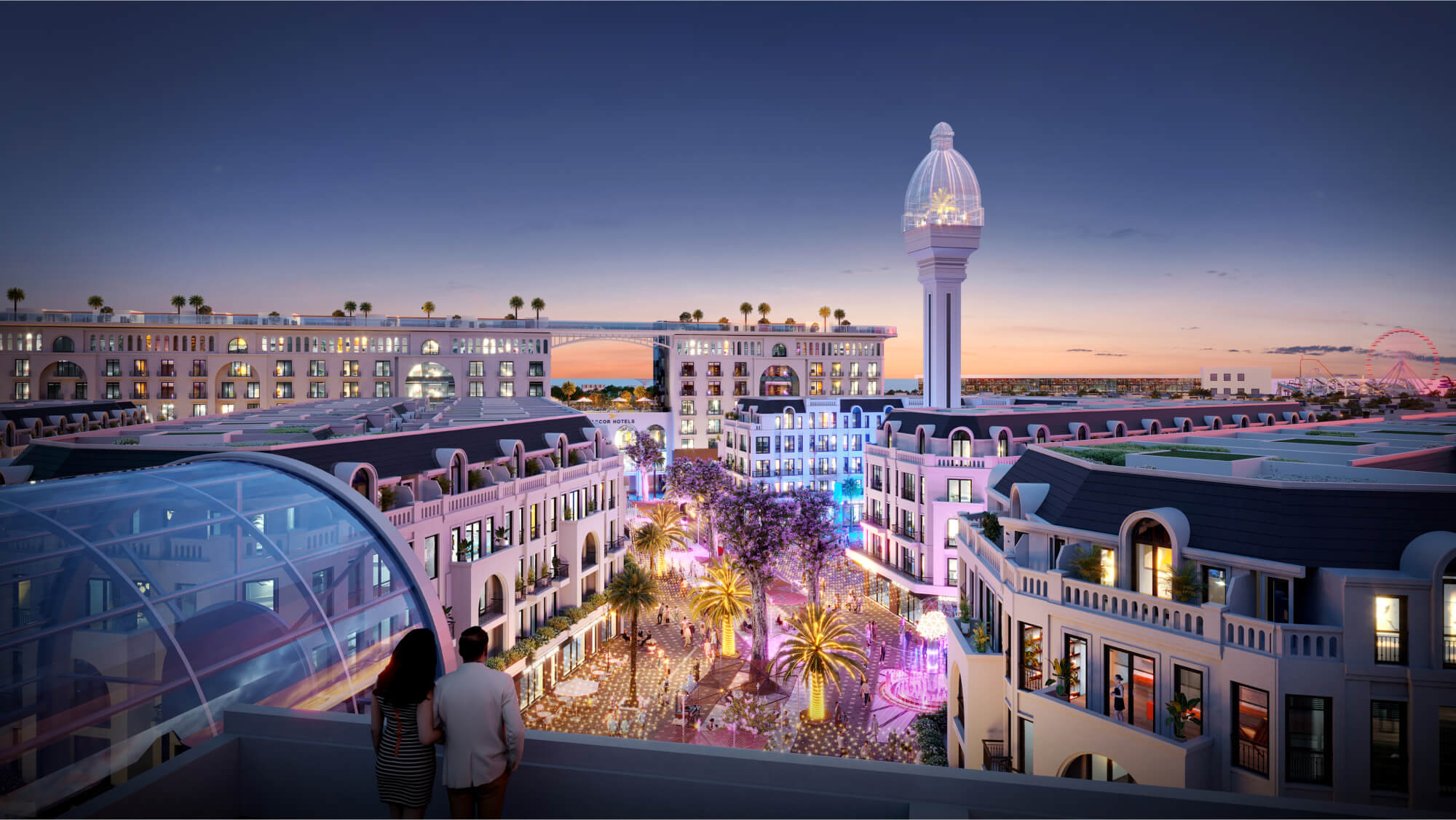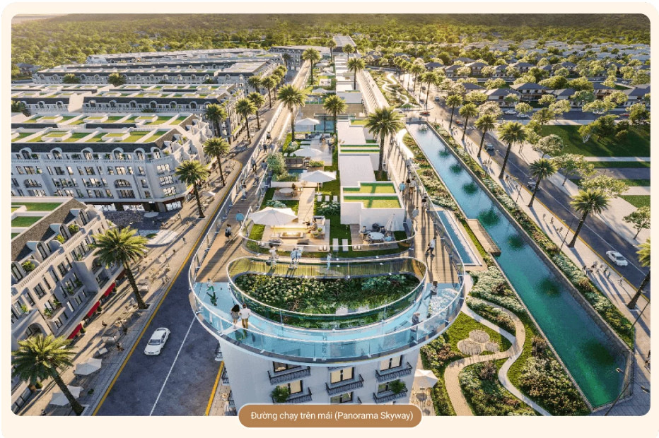 Khối khách sạn 8 tầng với phần đế cao 2 tầng cân đối và khỏe khoắn, theo nhịp điệu cuốn hút như một “DU THUYỀN ÁNH SÁNG” thưởng ngoạn giữa sông Ngân. Các vòm chính Boutique Hotel đưa ra ngoài, từ dưới lên trên theo một đường cong đầy lãng mạn. Các căn shophouse tại đây thiết kế 5 tầng một tum với 6m chiều rộng. Điều này giúp chủ sở hữu có thể khai thác đa dạng các hoạt động kinh doanh từ cửa hàng thời trang, nhà hàng, quán cà phê, spa cao cấp…