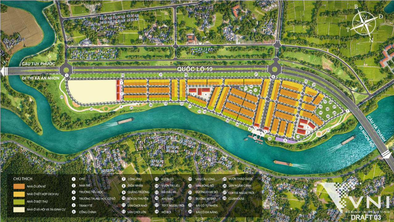 Tên dự án: Khu đô thị Bắc Hà Thanh. Chủ đầu tư: Phát Đạt Corp. Quy mô: 43,16 ha. Vị trí: Quốc lộ 19 mới, xã Phước Thuận, huyện Tuy Phước, tỉnh Bình Định. Hiện đã hoàn thành phần thô, hoàn thiện mặt ngoài 92 căn shophouse (ODV) mặt tiền QL19. CDT đang tiếp tục đẩy mạnh thi công các căn shophouse còn lại lên đến 215 căn. Dự án có 215/328 căn shophouse xây sẵn, được bố trí dọc QL19 và các trục đường chính, chiếm hơn 65,5% SP shophouse, hơn 15% tổng SP của dự án, hơn 20% diện tích đất thương phẩm. *** Tiến độ 06/10/2024: - Tiếp tục hoàn thiện các hạng mục hạ tầng: đường nhựa, vỉa hè, đèn đường... - Hoàn thiện phần móng nhà tiếp khách - Trồng cỏ tạo mảng xanh - Hoàn thiện xây dựng 92 căn shophouse đến tầng 2; đổ bê tông sàn tầng 3 lũy kế 89/92 căn; đổ bê tông sàn tầng tum lũy kế 58/92 căn; đổ bê tông sàn tầng mái lũy kế 45/92 căn.