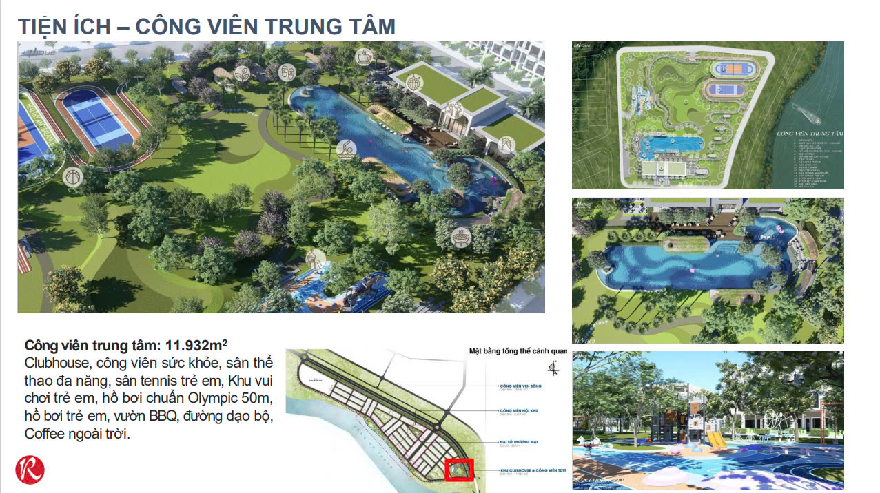 | Tiện ích | Nhà trẻ, trường tiểu học, THCS, chợ, TTYT, hồ bơi, quảng trường, nhiều khu công viên, sân chơi thể thao... |