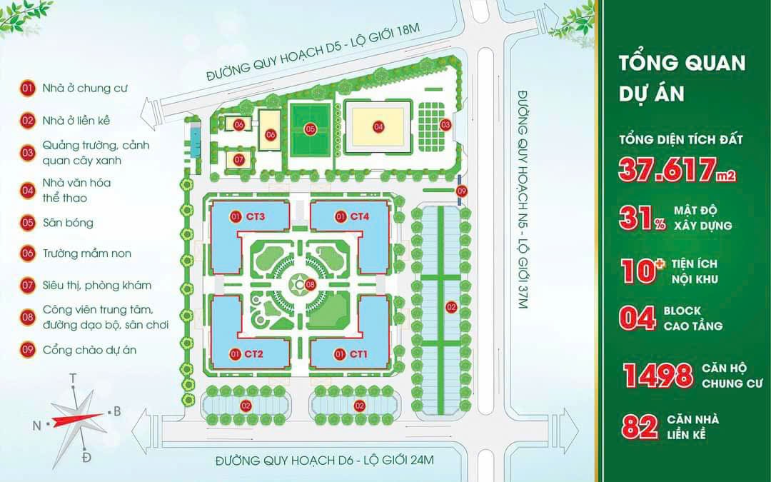 | Quy mô | 37.617m2 (4 block 15 tầng + 5 khối nhà thấp tầng 82 căn) |