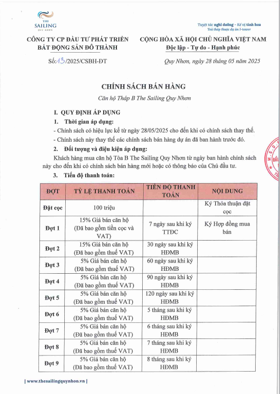 CHÍNH SÁCH BÁN HÀNG MỚI NHẤT CHO BLOCK B NGÀY 28/05/2025