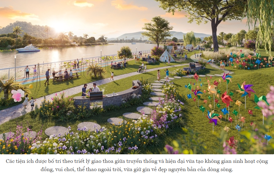 Không tận dụng tối đa diện tích để xây dựng, dự án dành tỷ lệ lớn quỹ đất cho tổ hợp công viên bờ sông hơn 18.000 m². Quy hoạch này không chỉ bảo vệ hệ sinh thái tự nhiên của sông Hà Thanh mà còn biến cảnh quan ven sông thành "hành lang xanh" liền mạch cho cư dân.