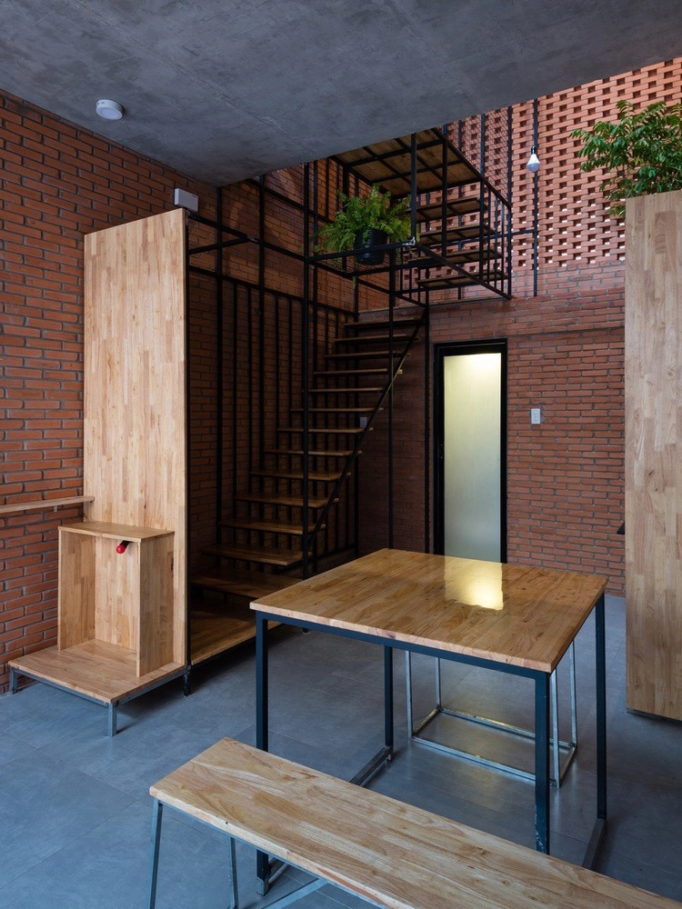 Kiến trúc sư đề nghị không trát vữa cho ngôi nhà mà dùng luôn gạch thô để làm mặt tiền cũng như nội thất, sau khi hoàn thành ngôi nhà khiến ai cũng phải xuýt xoa vì quá đẹp.
