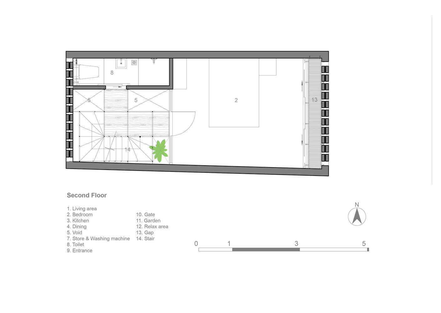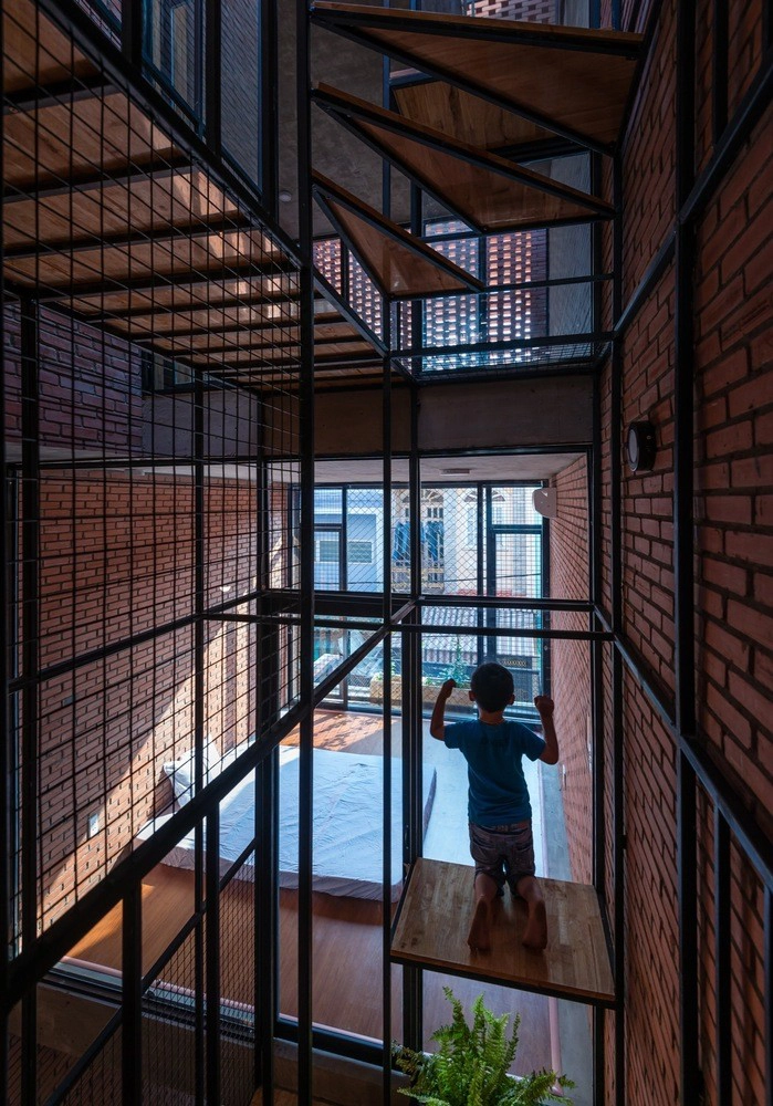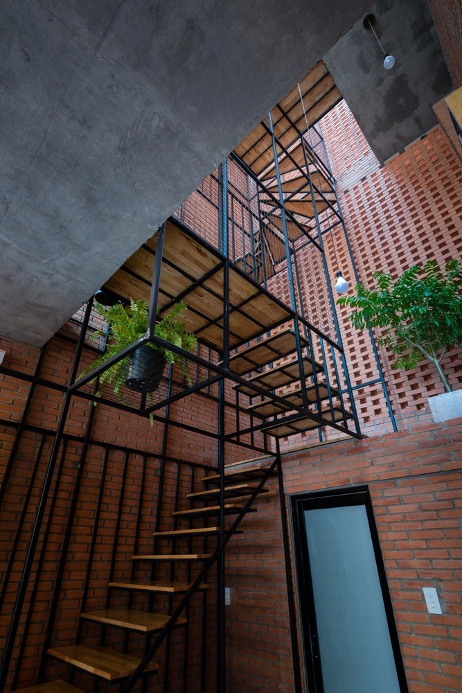 Điểm nhấn của ngôi nhà là chiếc cầu thang độc đáo không chỉ dùng làm cầu thang mà còn là góc trồng hoa, đọc sách hay ngồi thư giãn.