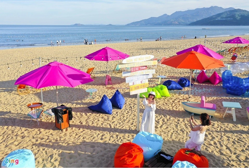 Giới trẻ check-in trên bãi biển Quy Nhơn. Ảnh: Minh Hoàng.